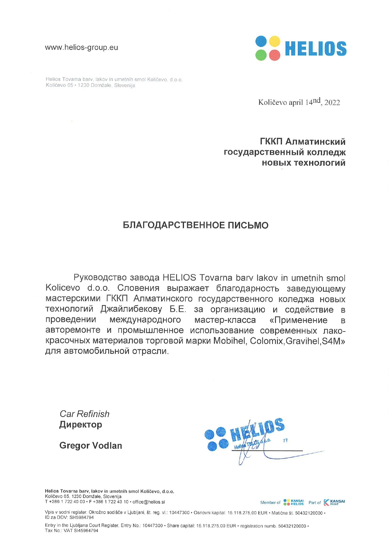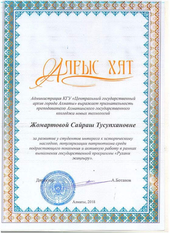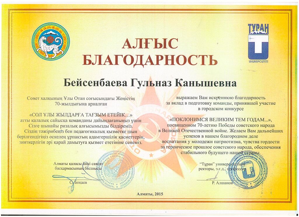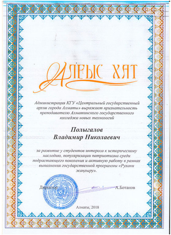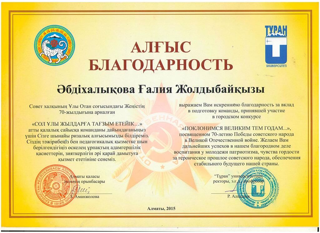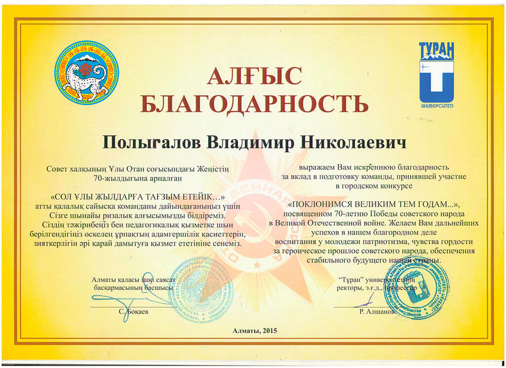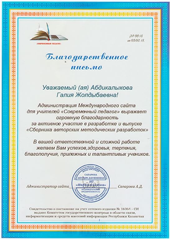• Благодарственные письма